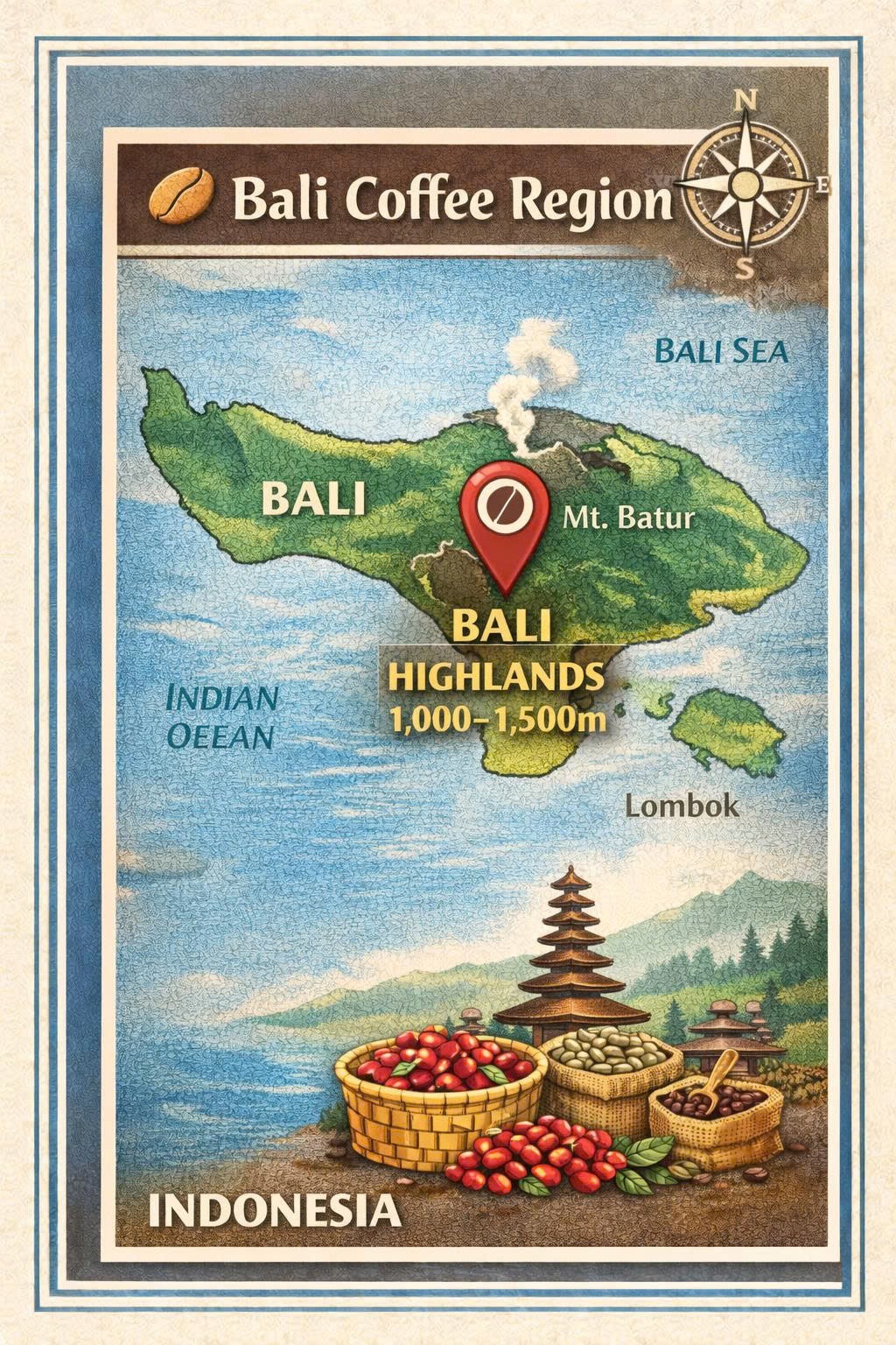 Grown in the highlands between the Batukaru and Agung volcanoes, Bali Kintamani coffee is cultivated within a unique community farming system called Subak Abian. This system is based on the Hindu philosophy of “Tri Hita Karana,” which emphasizes harmony with God, other people, and the environment. This philosophy directly informs their organic practices and their preference for Fully Washed processing, which yields a cup profile that is uniquely bright and clean, setting it apart from the earthier, wet-hulled coffees of Sumatra.
