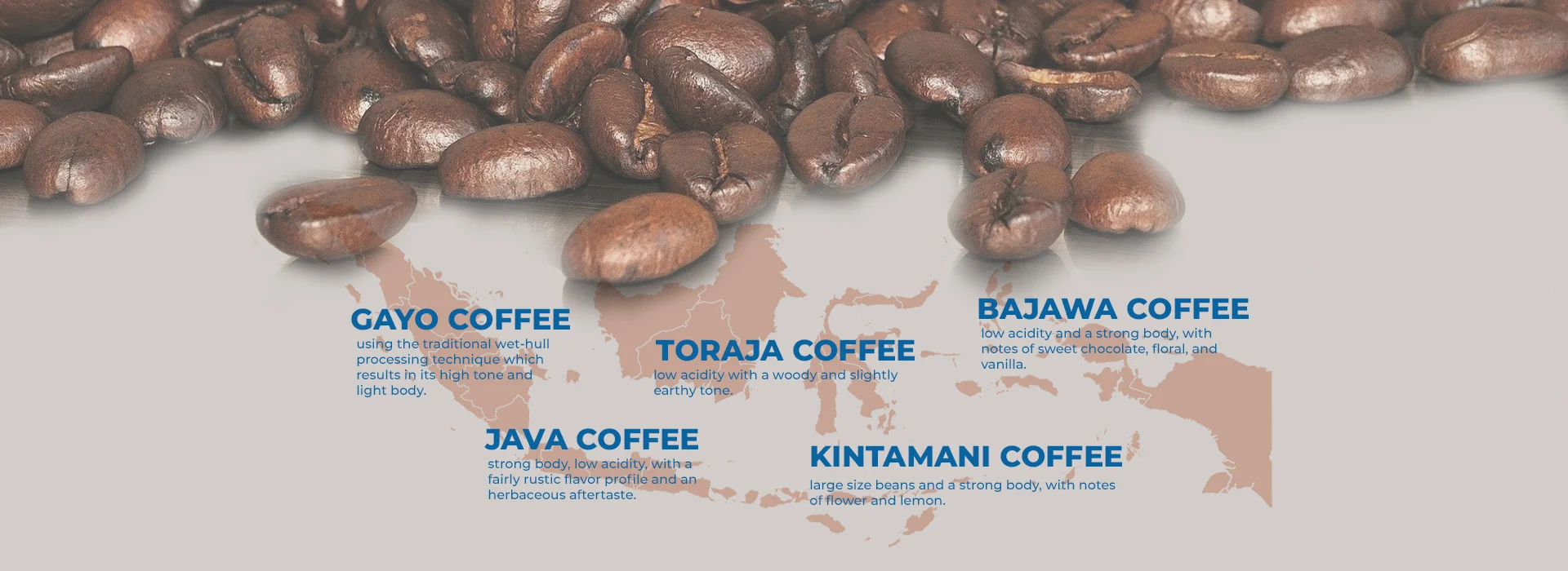 100% Arabica from Indonesian regions such as Gayo, Toraja, Java; specially processed and selected from the best beans, with up to 93% fully ripe cherries. Signature flavor notes: cacao, wood, herbs, spices; sometimes a light dried-fruit note. Creates sweetness and a smooth mouthfeel. Recommended for black espresso, latte/cappuccino, and Vietnamese phin when you want a smoother cup.